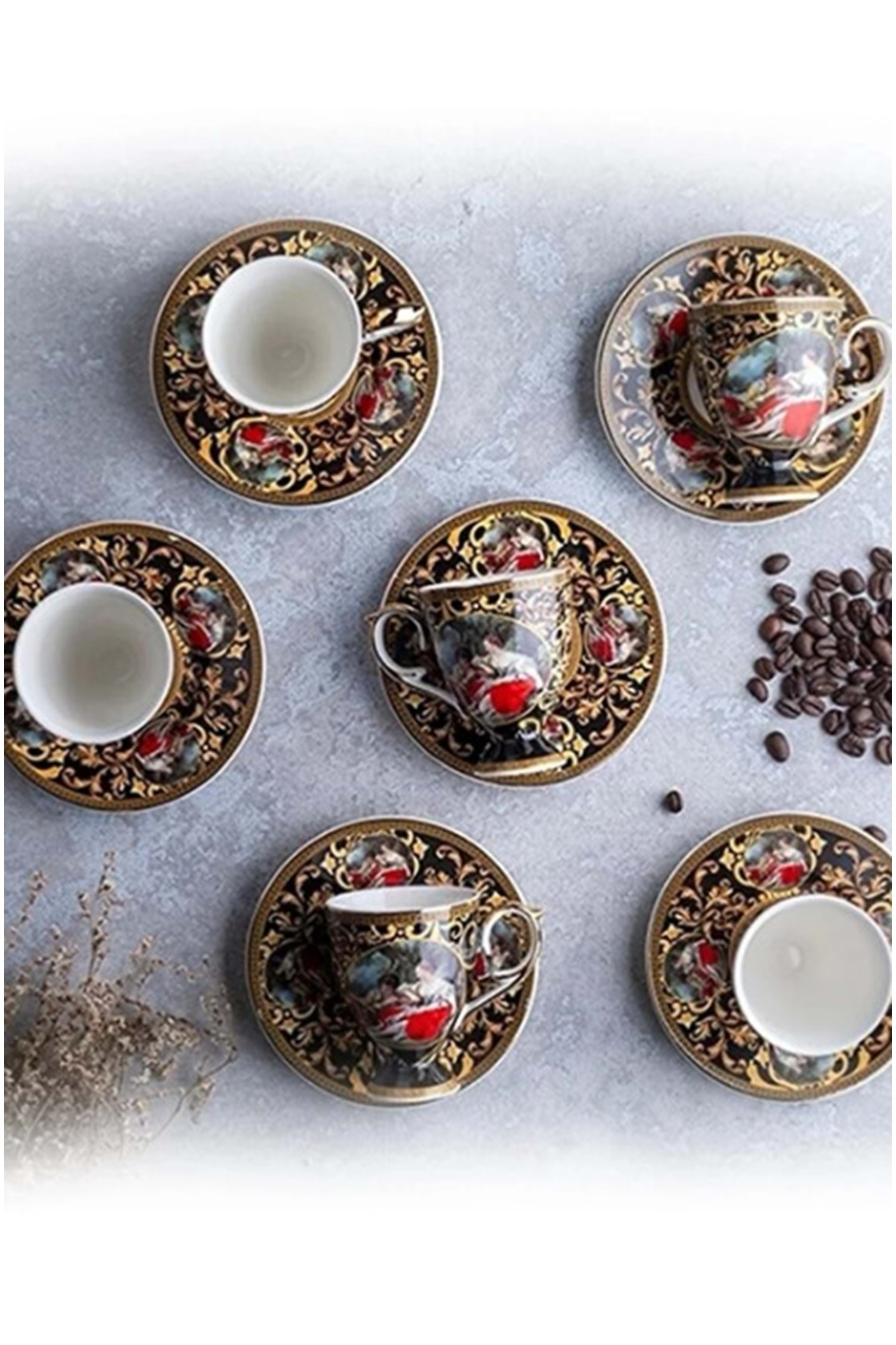 Kosova Vintage Viyana Kraliyet Tarzı Siyah Ve Altın Kahve Fincan Takımı 6'lı