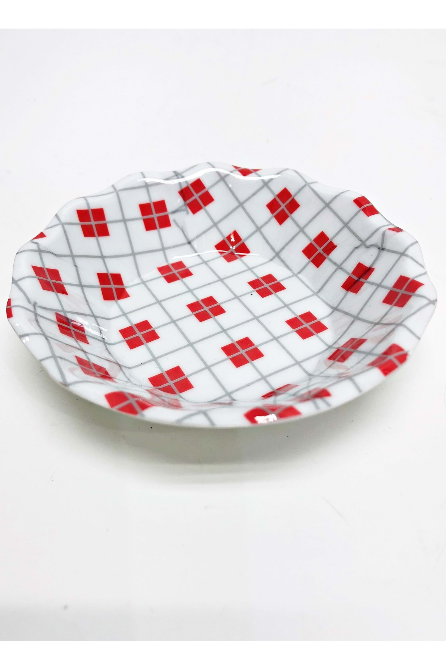 Melamin Kırmızı Gri Geometrik Şekilli Çay Tabağı 6 Adet