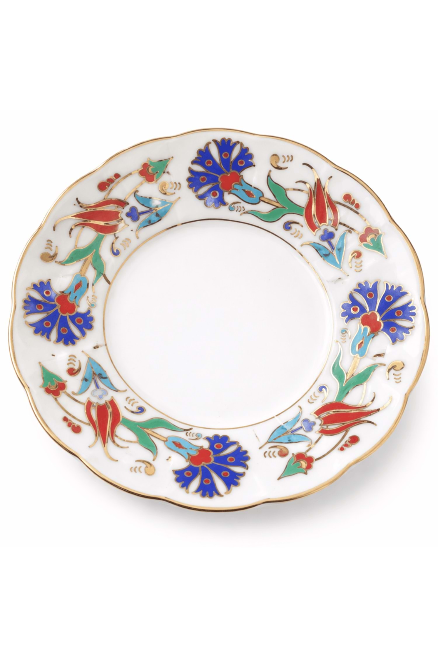 Geleneksel İznik sanatının zarafetini sofralarınıza taşıyan 12’li Yaldızlı İznik Motif Porselen Çay Tabağı, çay sunumlarını estetik ve lüks bir deneyime dönüştürür. İnce detaylarla işlenmiş İznik motifleri ve altın yaldızlı kenar süslemeleri, her sofraya klasik ve seçkin bir hava katar.
