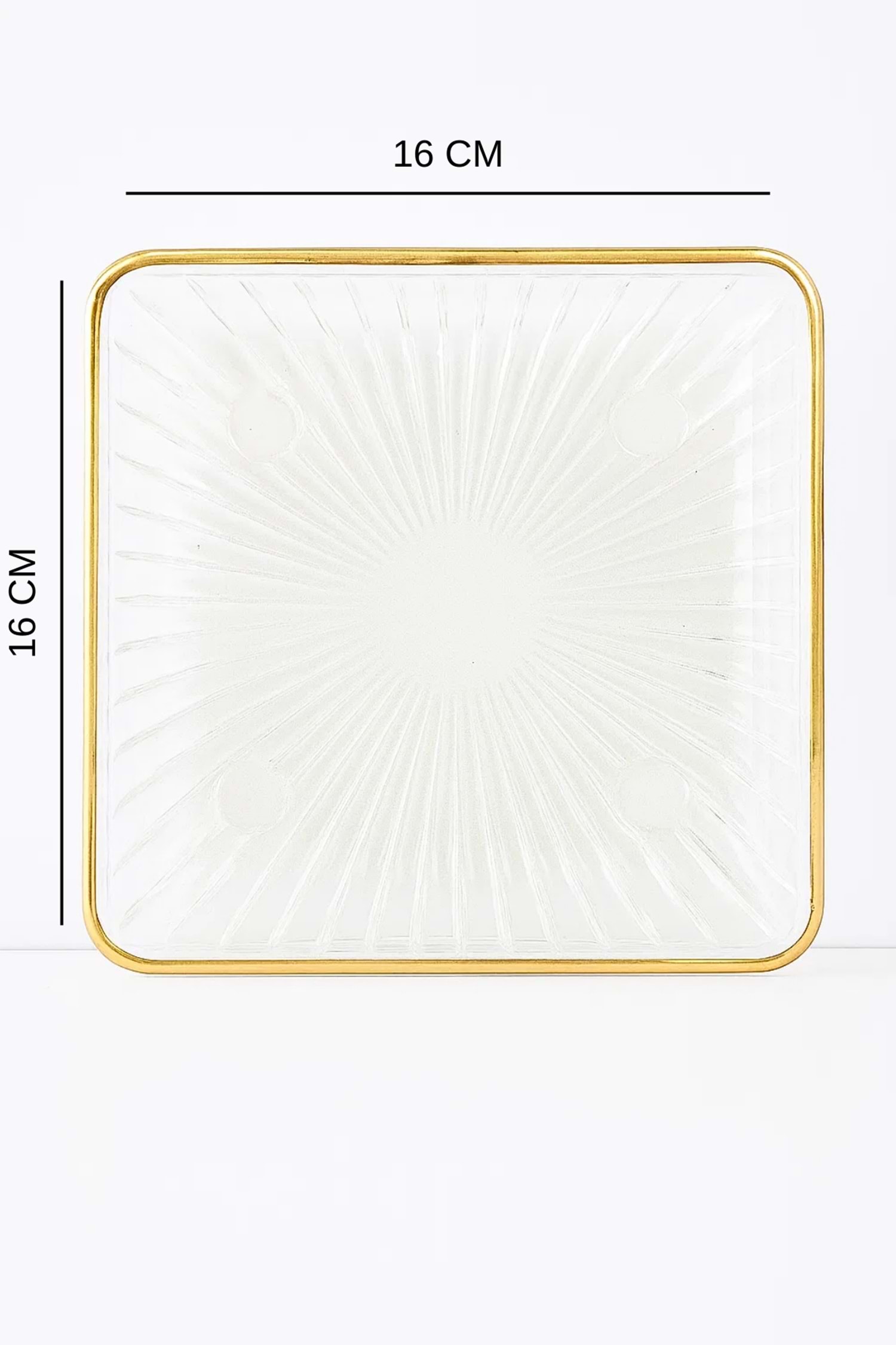 2 Adet Yaldızlı Cam Kare Tabak – Şeffaf Desenli Sofra Sunum Tabağı