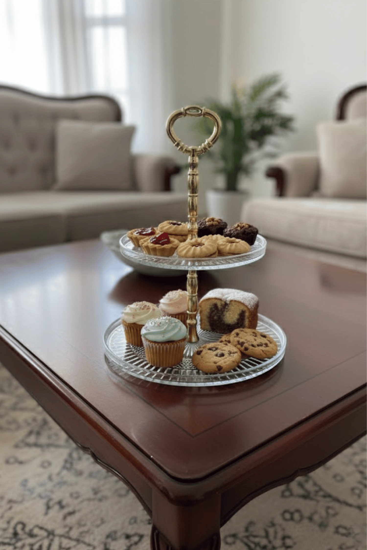 2 katlı yapısı sayesinde yerden tasarruf ederken, çay saatleri, misafir ağırlamaları, doğum günü ve özel davetlerde pratik kullanım sunar. Gold kulpu sayesinde kolayca taşınabilir ve dekoratif görünümüyle mutfak ve salon dekorunu tamamlar.