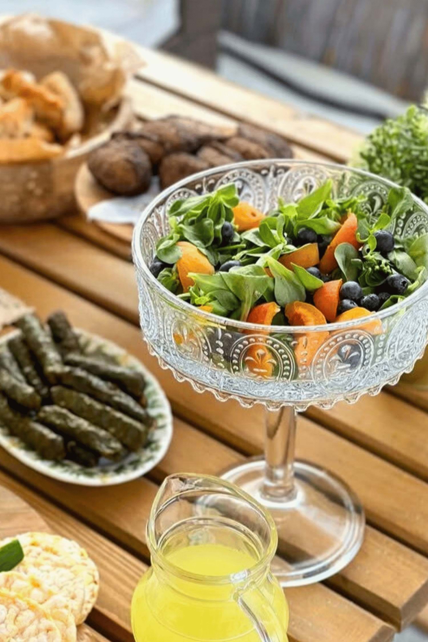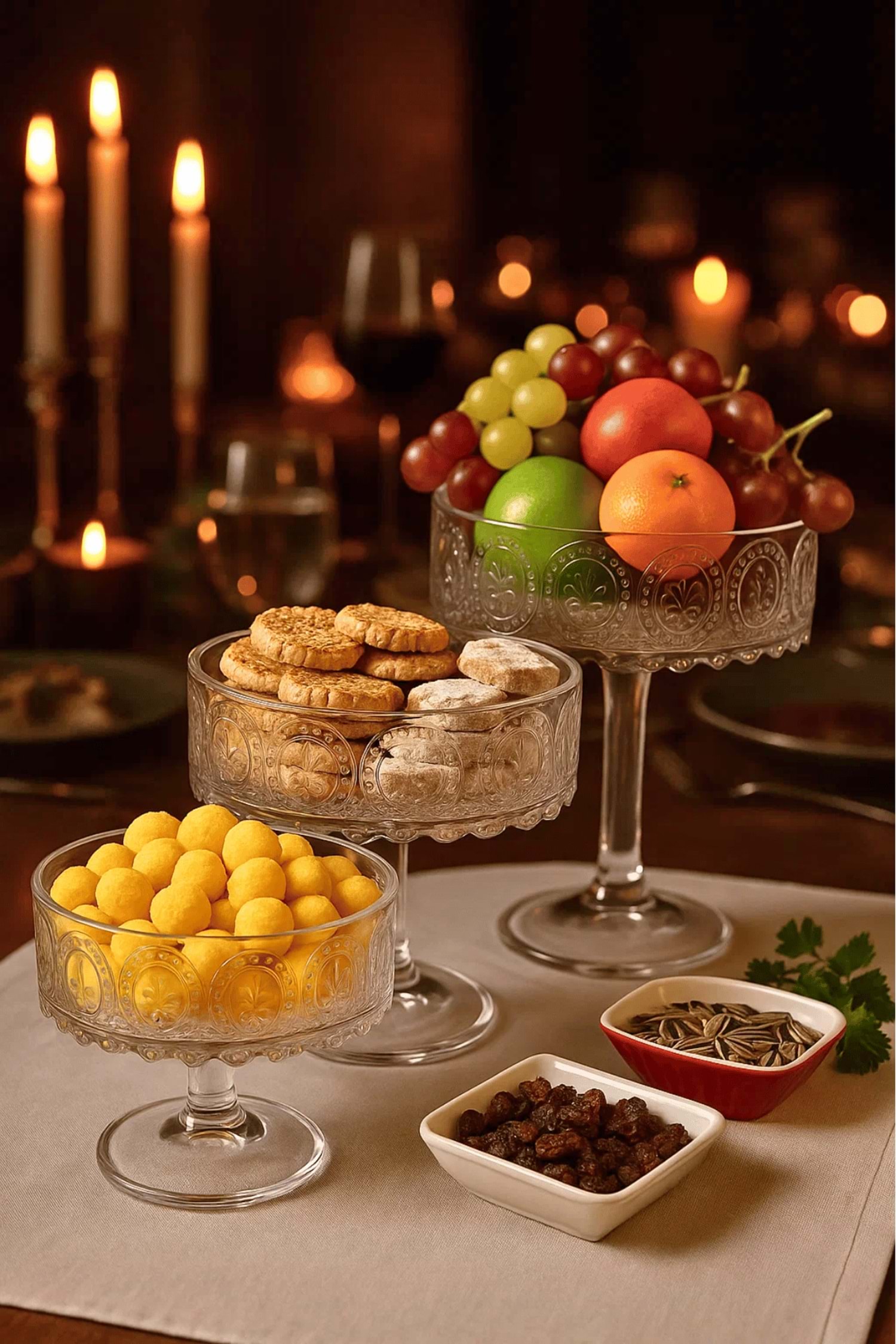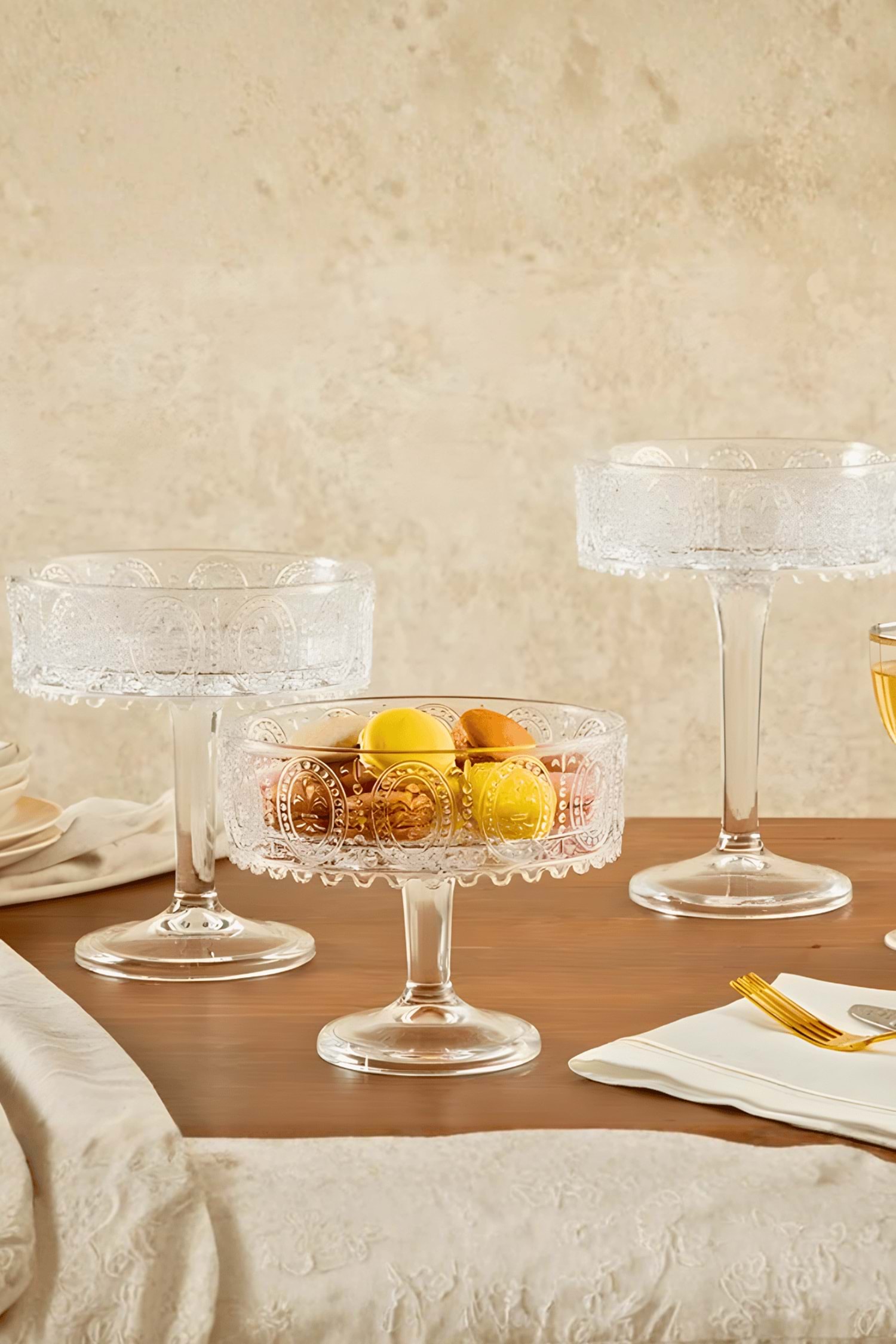 Dayanıklı El İşçiliği: Yüksek kaliteli cam malzemeden üretilen bu ayaklı kase, hem dayanıklı hem de uzun ömürlü bir kullanım sunar.