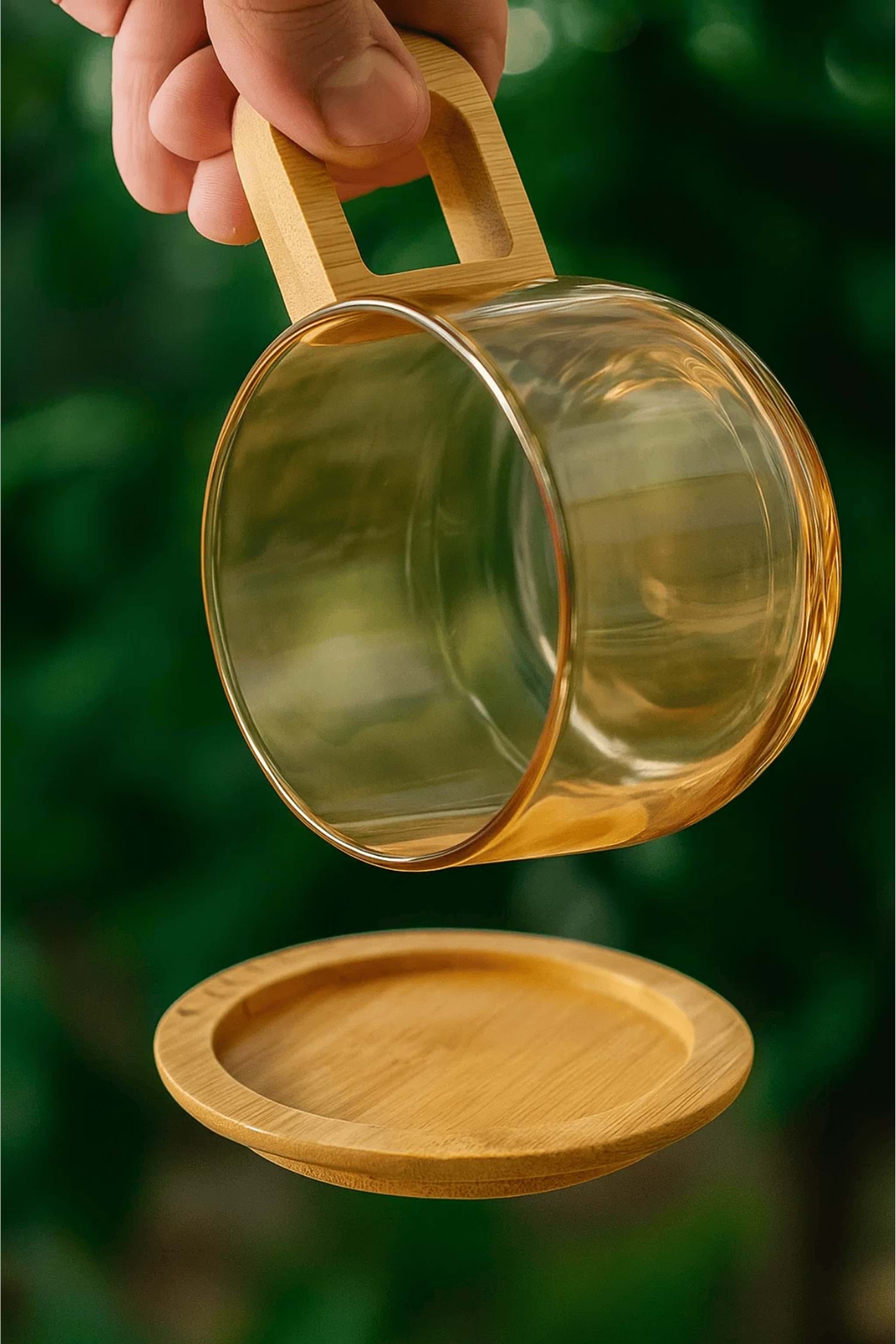 Set İçeriği: 6 adet amber cam kupa + 6 adet bambu altlık