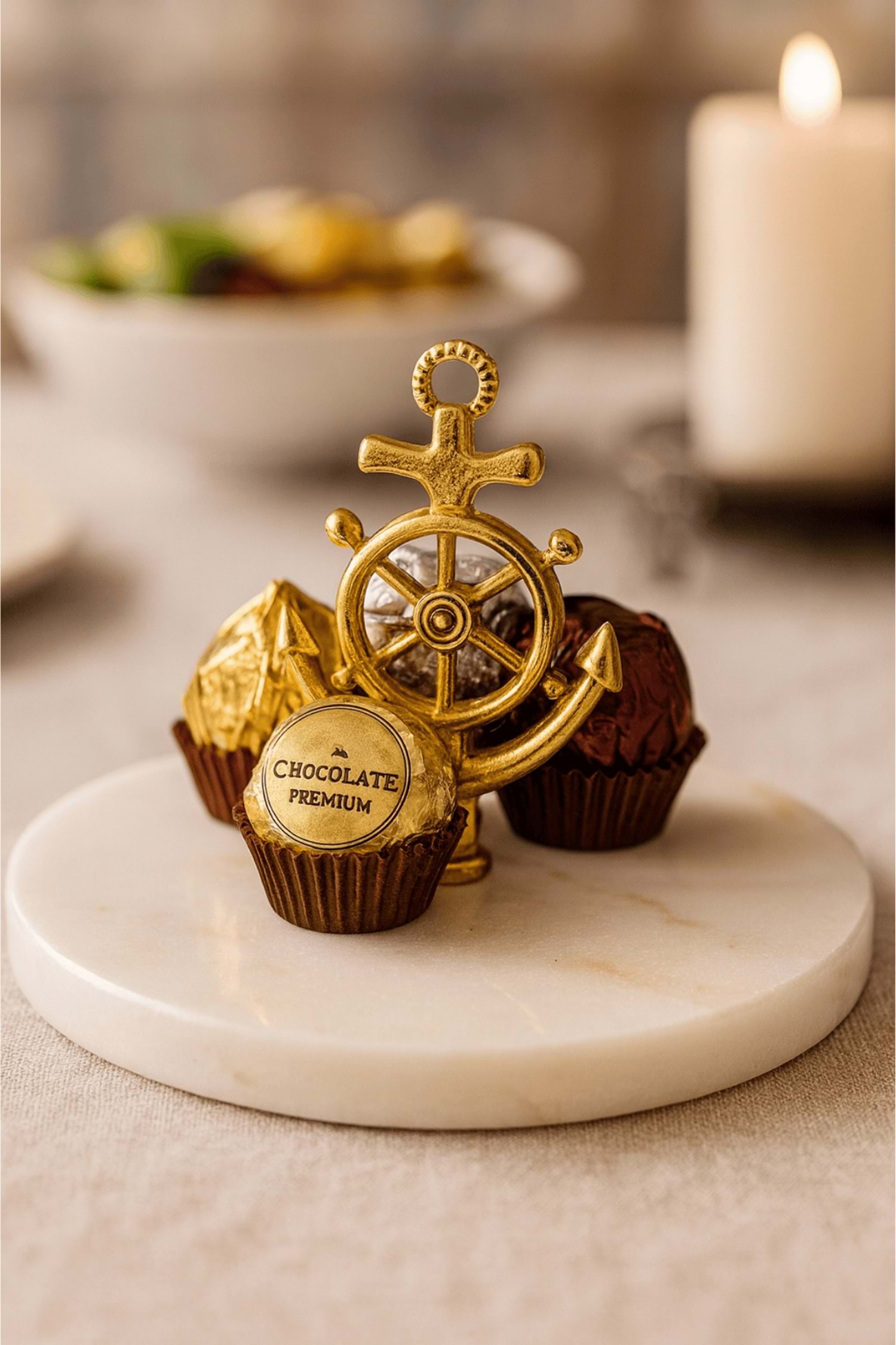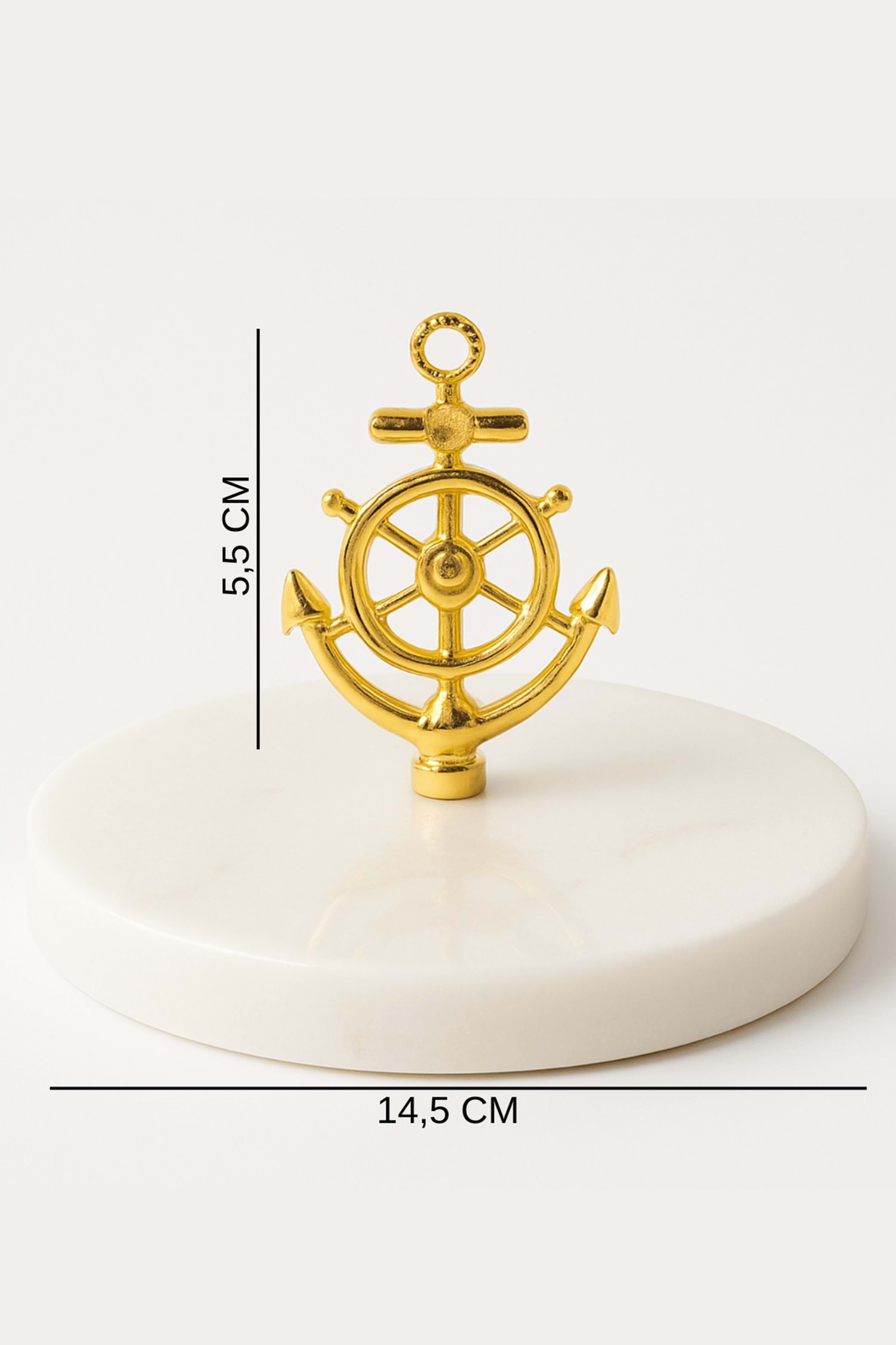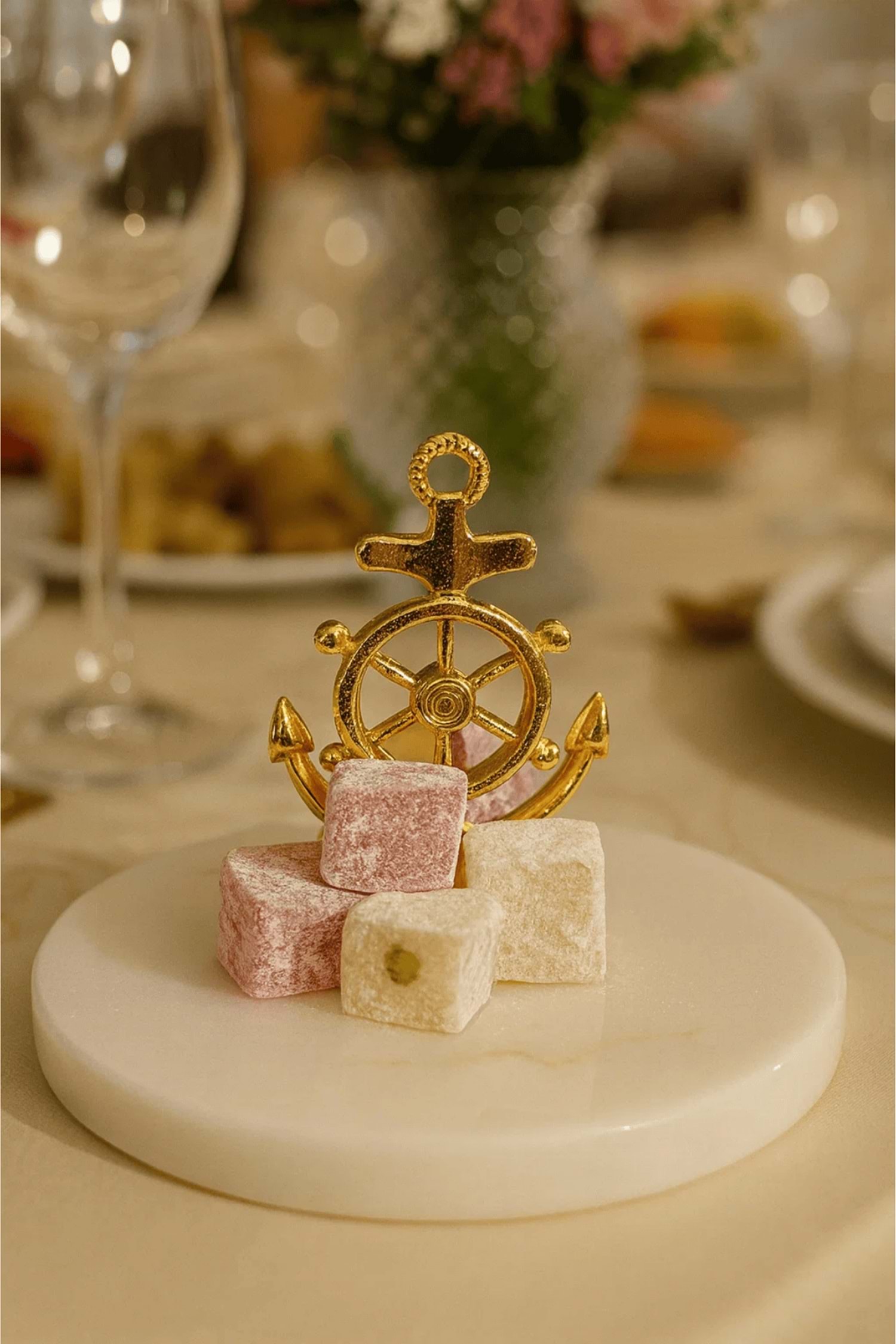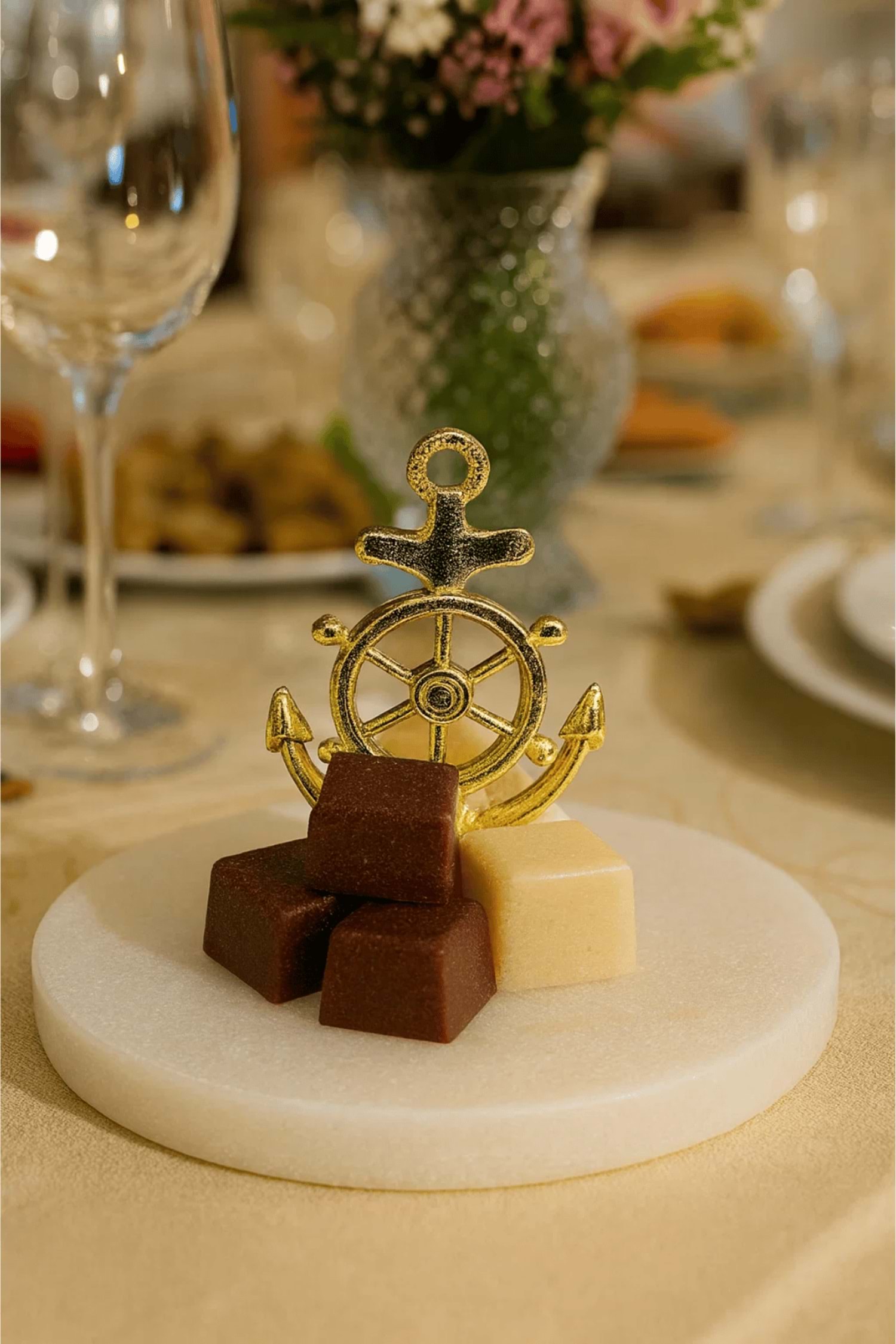 Altın Gemici Çapası Dekorlu Mermer Lokumluk – İkram, Tatlı & Drajelik Sunum Tabağı