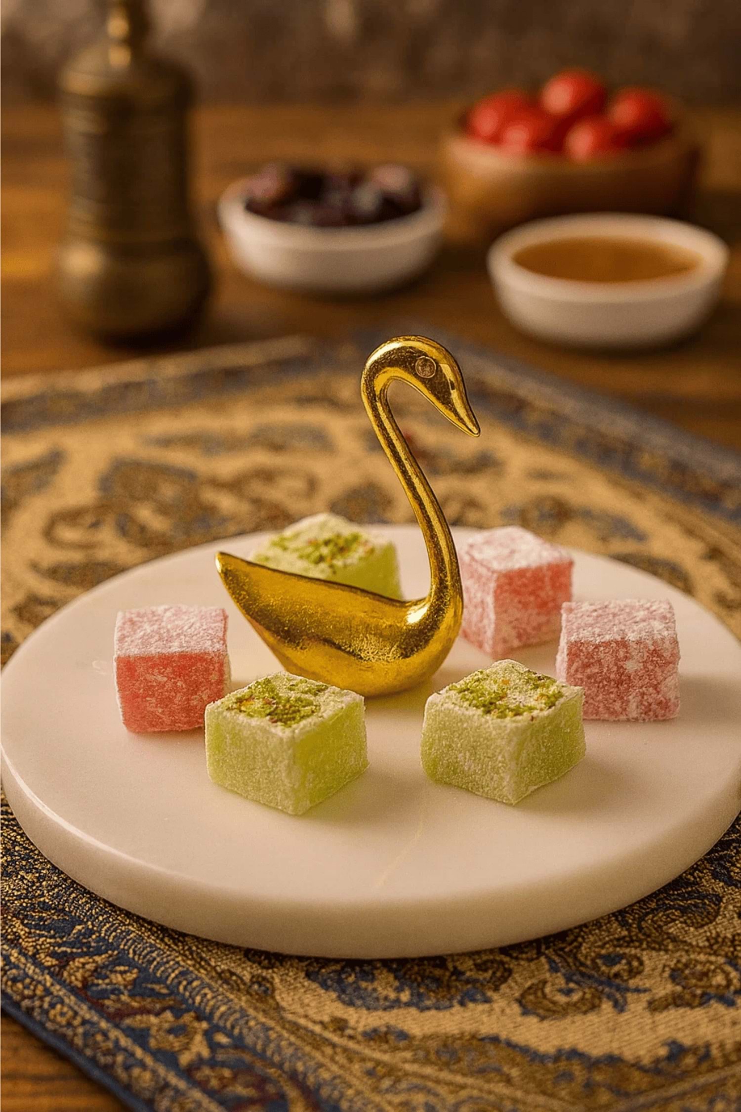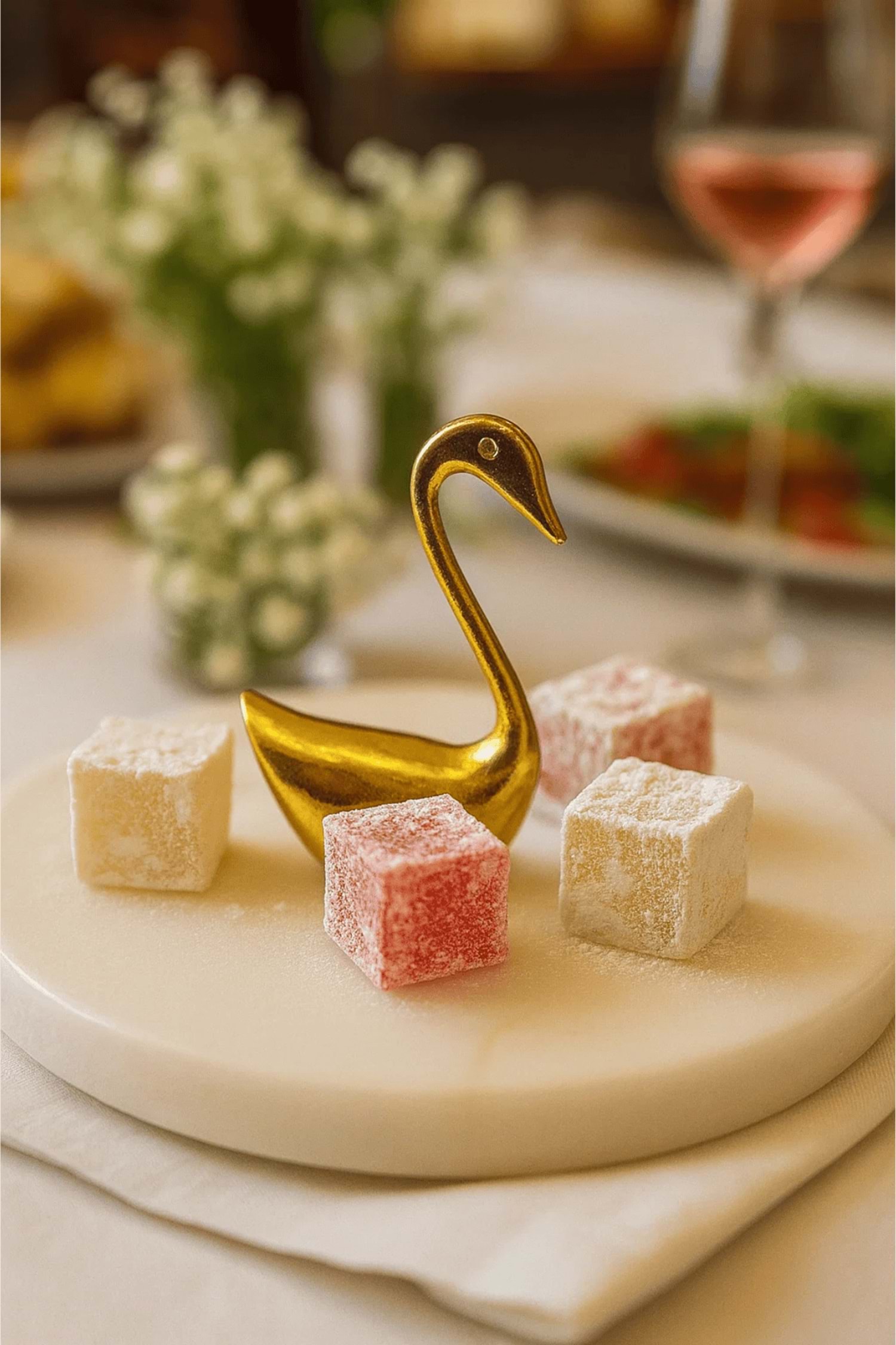 Ev misafirliklerinize zarafet ve şıklık katacak Altın Kuğu Dekorlu Mermer Lokumluk, hem dekoratif hem de işlevsel yapısı ile sofralarınızın göz alıcı parçası olmaya aday!