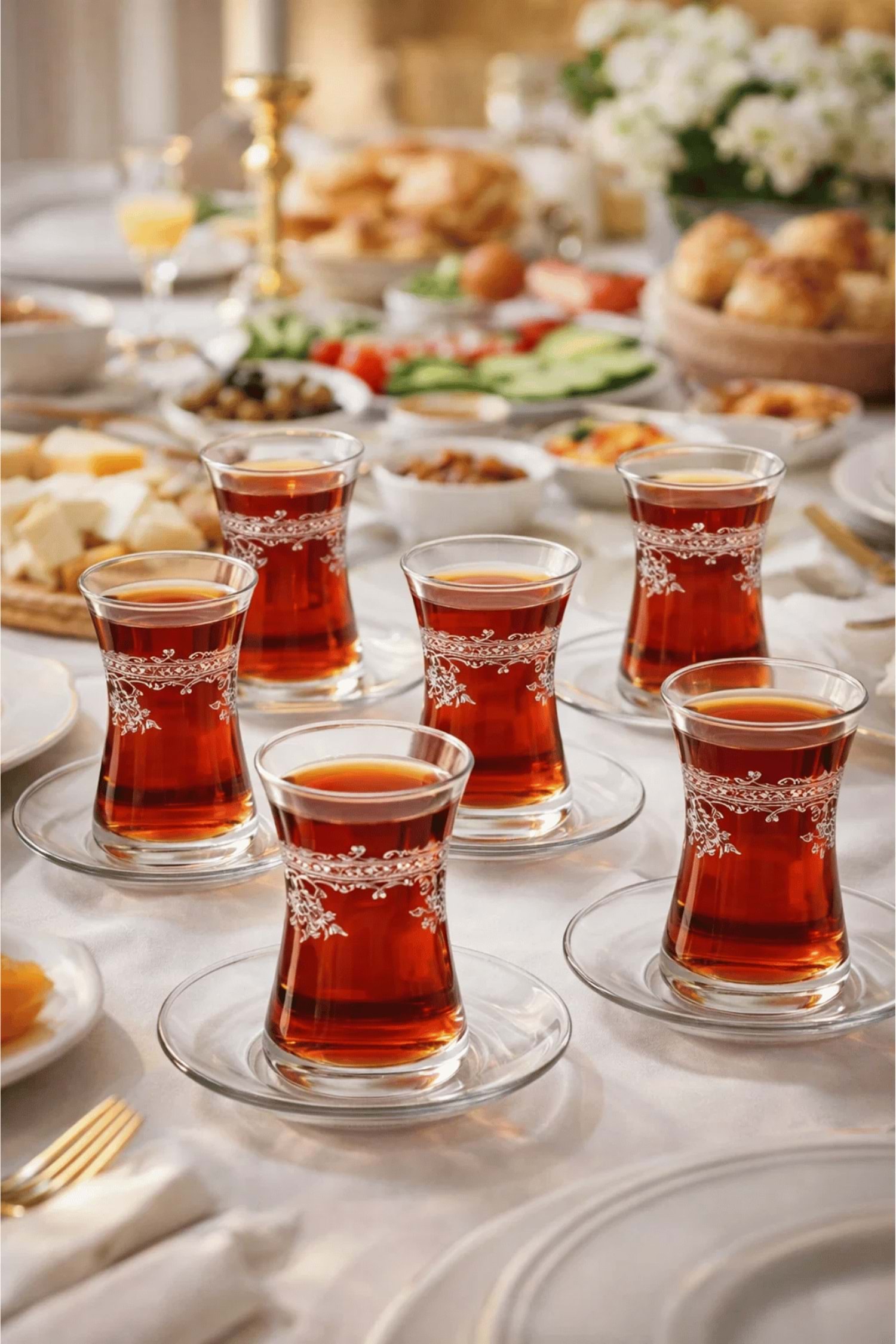 12 parça set (6 çay bardağı + 6 çay tabağı)