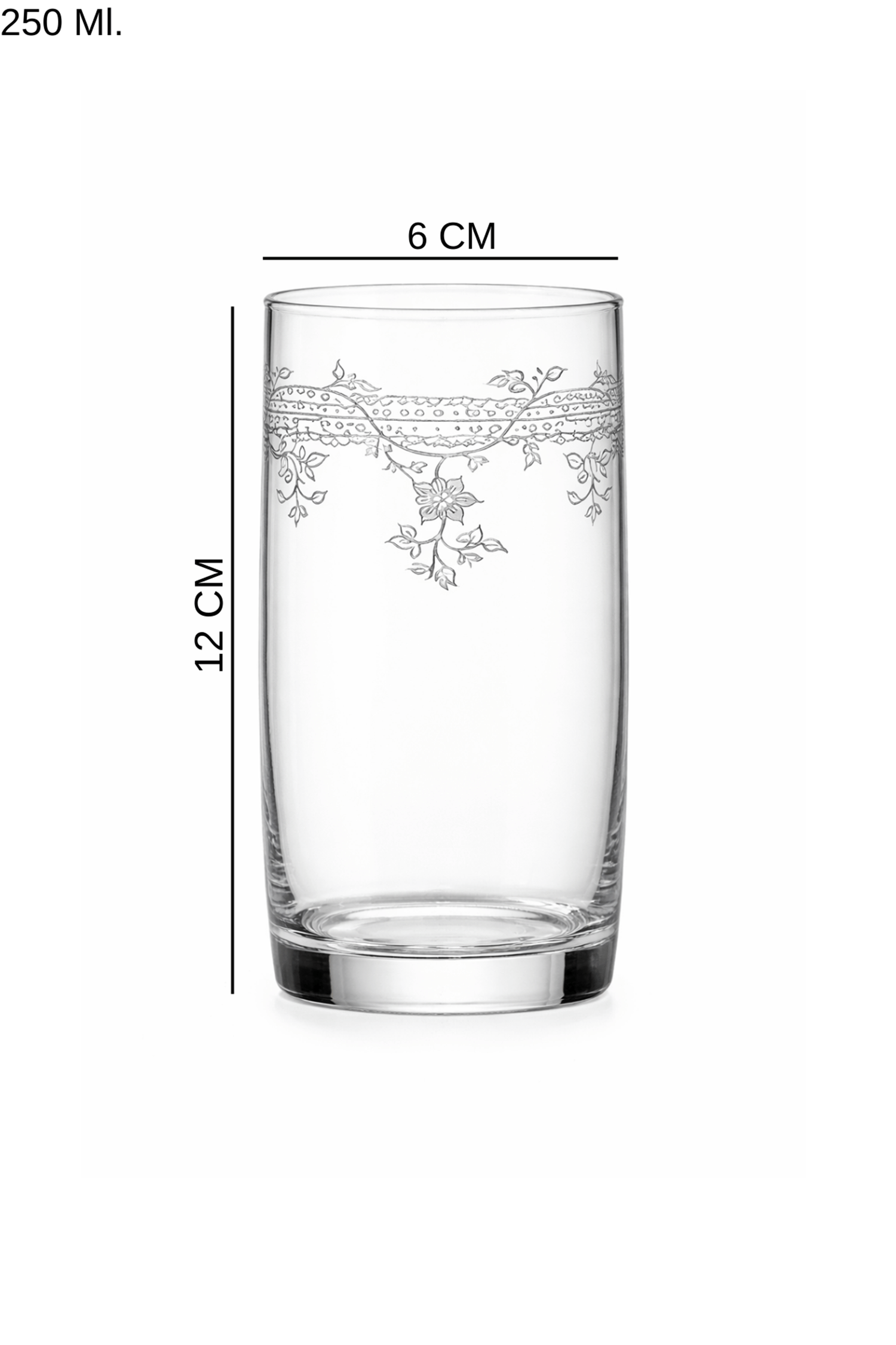 Özenle işlenmiş florale desenleri, ürüne klasik ve modern çizgilerin dengeli bir uyumunu kazandırırken kristal camın pürüzsüz dokusu elde konforlu bir kullanım sunar. Günlük kullanıma uygun dayanıklı yapısı, özel davet ve misafir sofralarında ise şık sunumlar yapmanıza olanak tanır. Su ve meşrubat servisleri için ideal bir tercihtir.