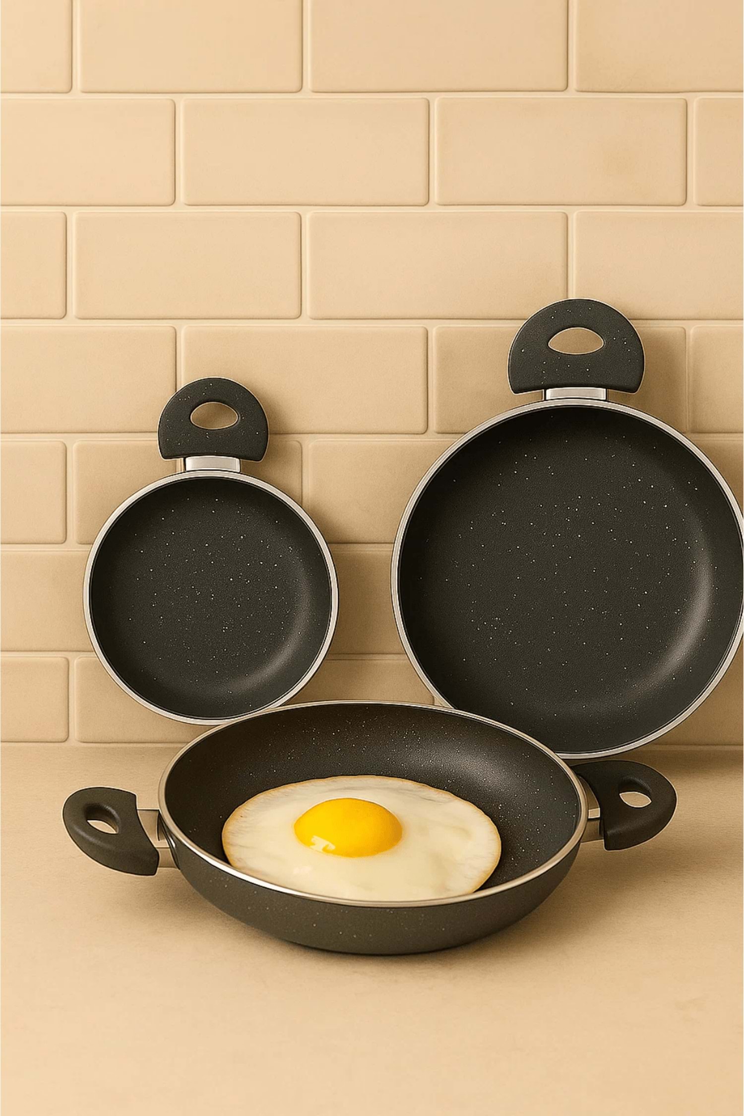 Şıklık ve dayanıklılığı bir araya getiren Granit 3’lü Sahan Seti, kahvaltılardan akşam yemeklerine kadar her öğünde mükemmel pişirme deneyimi sunar.