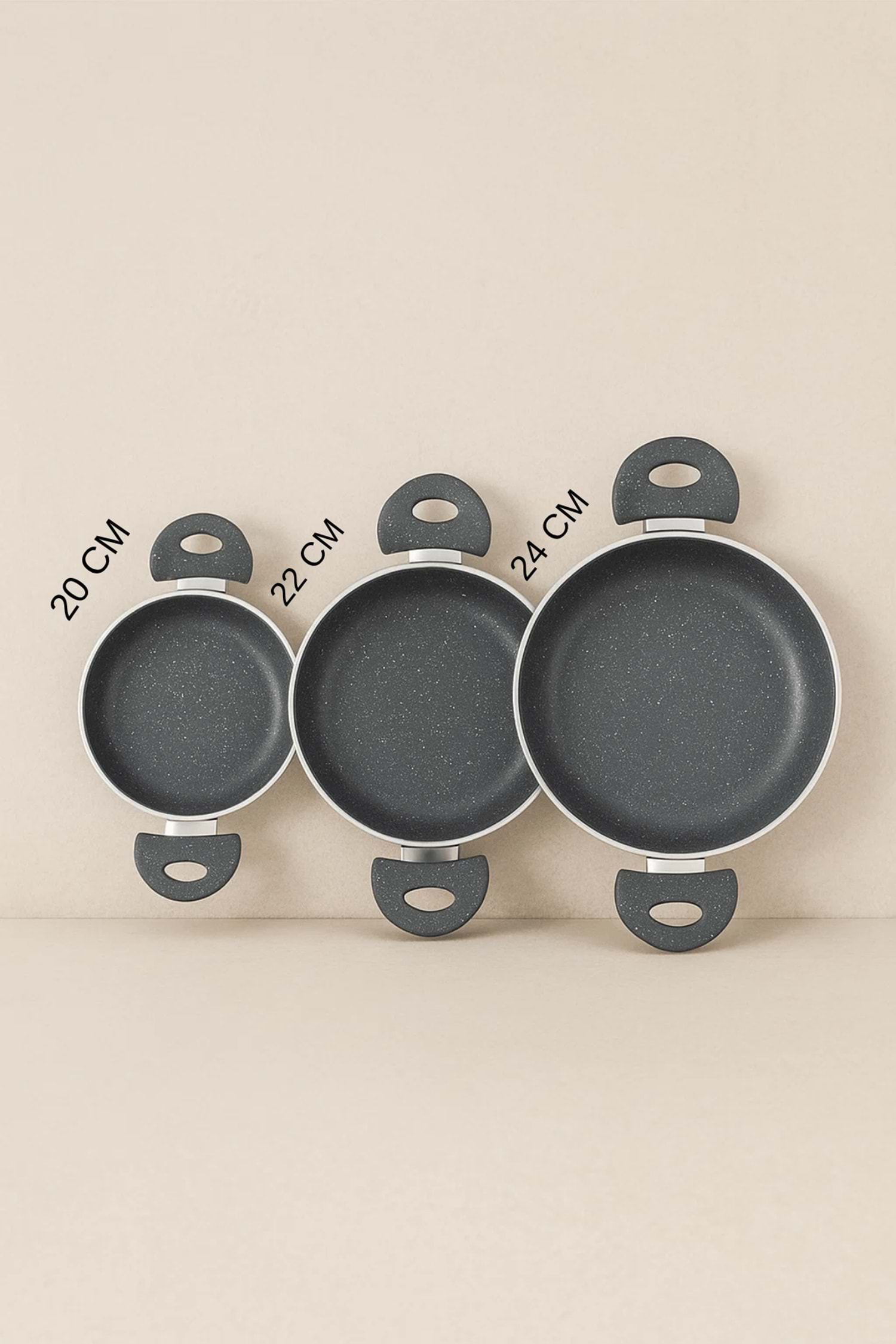 Granit 3’lü Sahan Seti – Yapışmaz Çift Kulplu Gri Sahan 20/22/24 cm