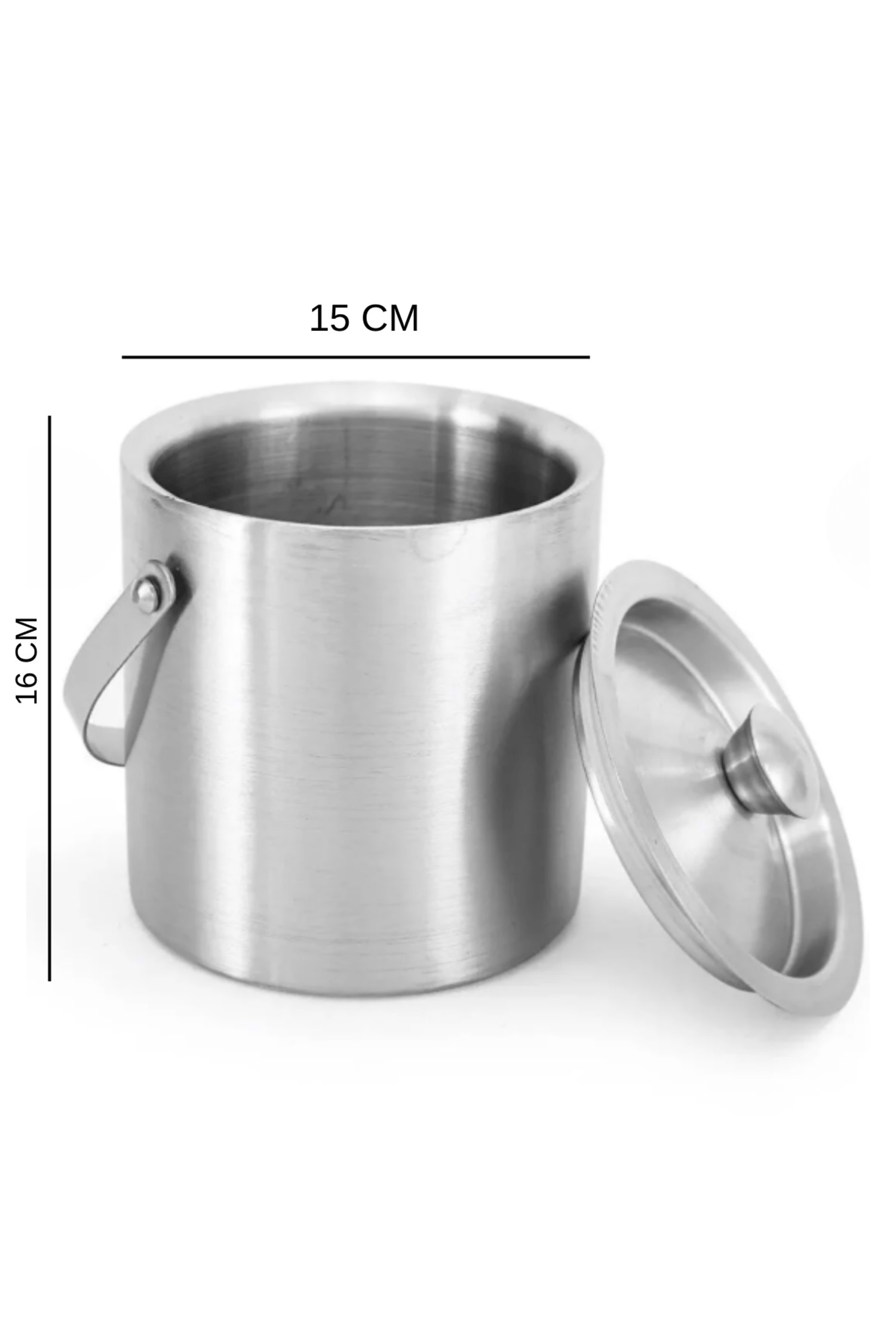 Paslanmaz Çelik Çift Cidar - Taşınabilir Saplı - Kapaklı 1,5 Lt. Buz Kovası, içeceklerinizi uzun süre soğuk tutmanız için özel olarak tasarlanmıştır. Çift cidarlı yapısı sayesinde buzlar daha yavaş erir, içecekleriniz her zaman taze ve serin kalır.