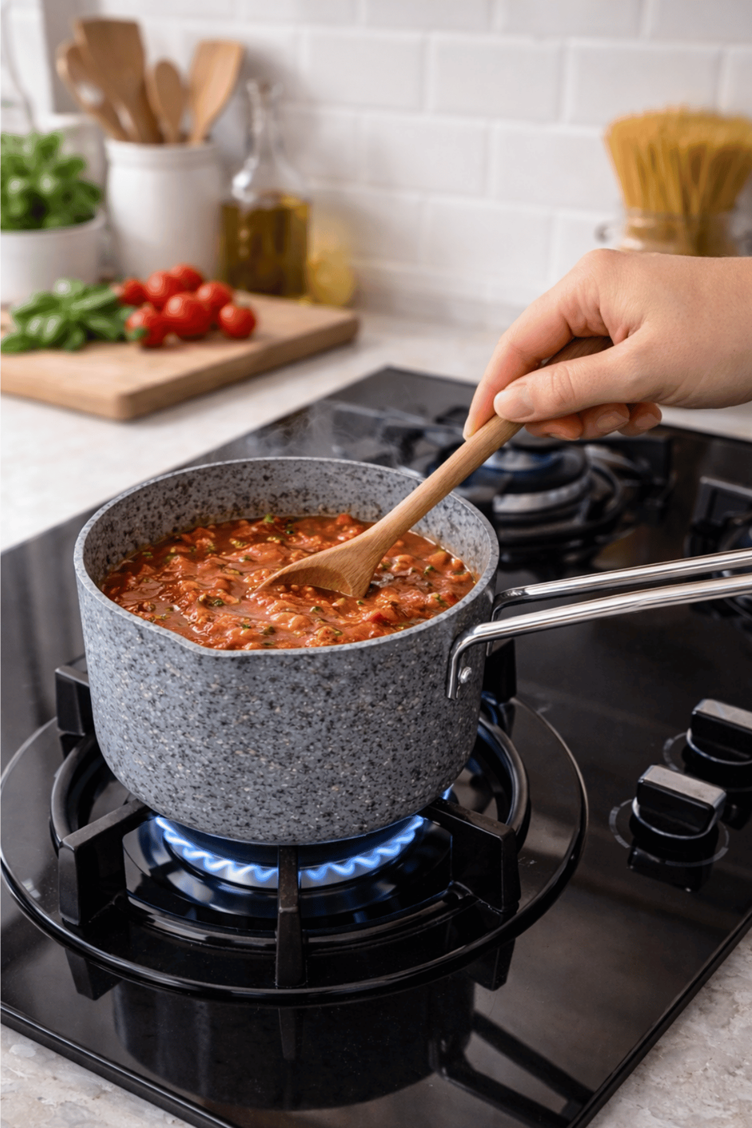 Kompakt boyutu ve derin haznesi sayesinde süt kaynatma, beşamel ve domates sosu hazırlama, çorba ısıtma, puding yapımı ve daha birçok tarif için idealdir. Isıyı eşit dağıtan gövdesi sayesinde içindeki süt ya da sos homojen şekilde pişer, dip tutma riskini minimuma indirir.