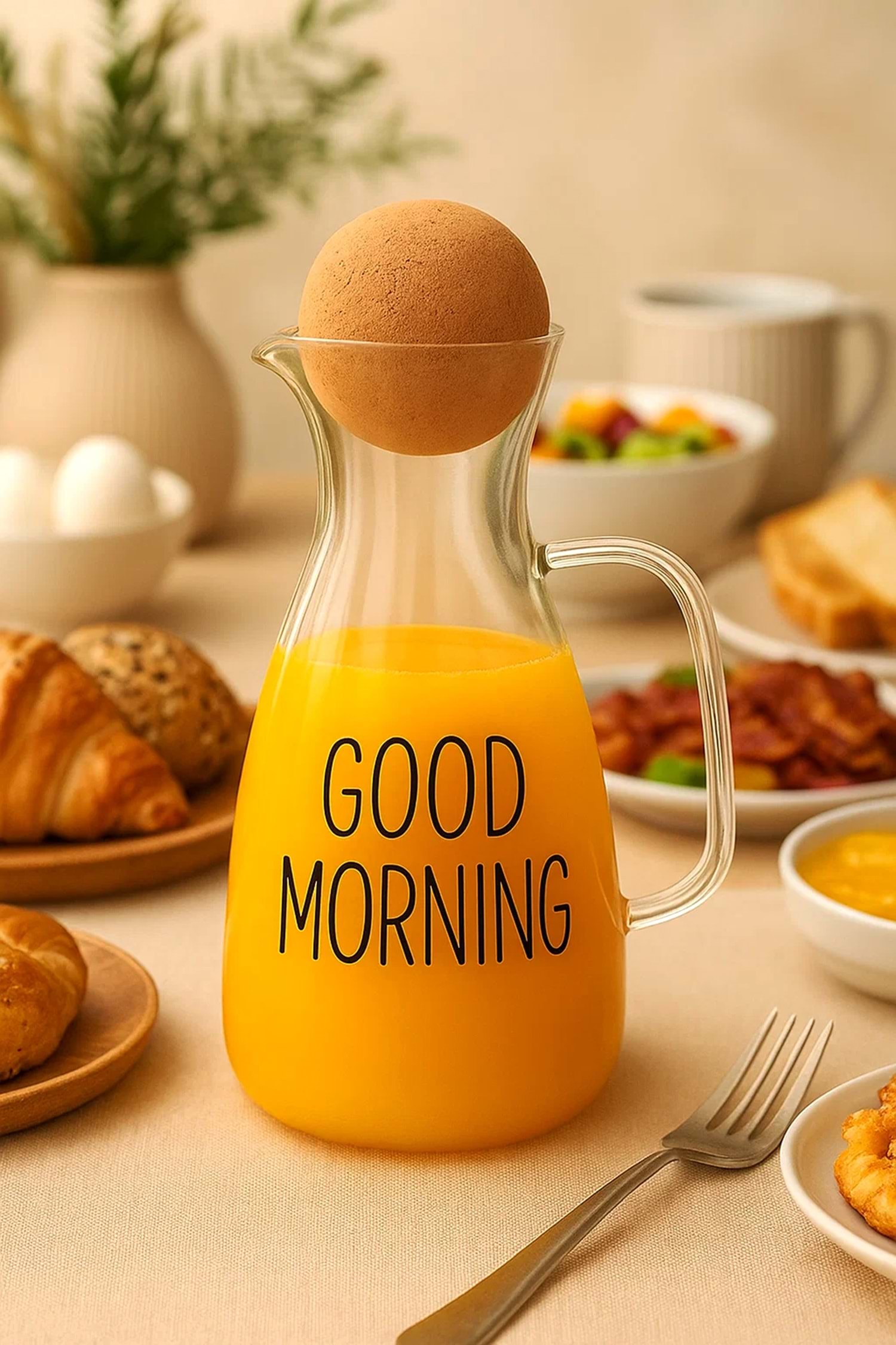 Şık tasarımı ve yüksek kaliteli borosilikat cam yapısıyla sofralarınıza zarafet katacak bu lüks cam sürahi, hem estetik hem de dayanıklılığı bir arada sunar. Mantar top şeklindeki kapak detayıyla dikkat çeken ürün, içeceklerinizi taze ve hijyenik şekilde saklamanıza yardımcı olur.