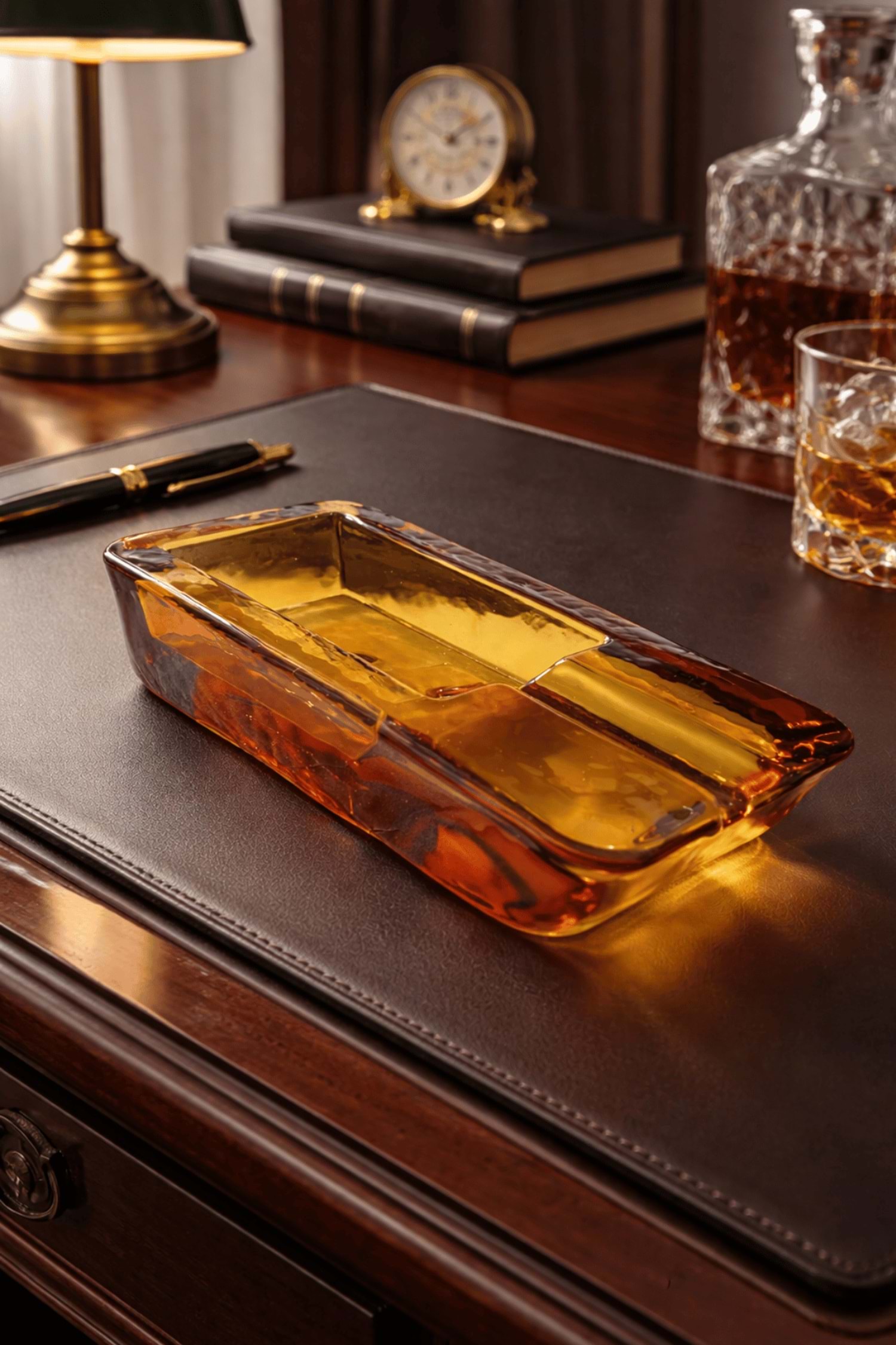Zamansız tasarımı, premium cam kalitesi ve dikkat çekici amber rengiyle bu özel küllük; kendiniz için seçkin bir aksesuar, sevdikleriniz için ise prestijli ve etkileyici bir hediye alternatifi sunar.