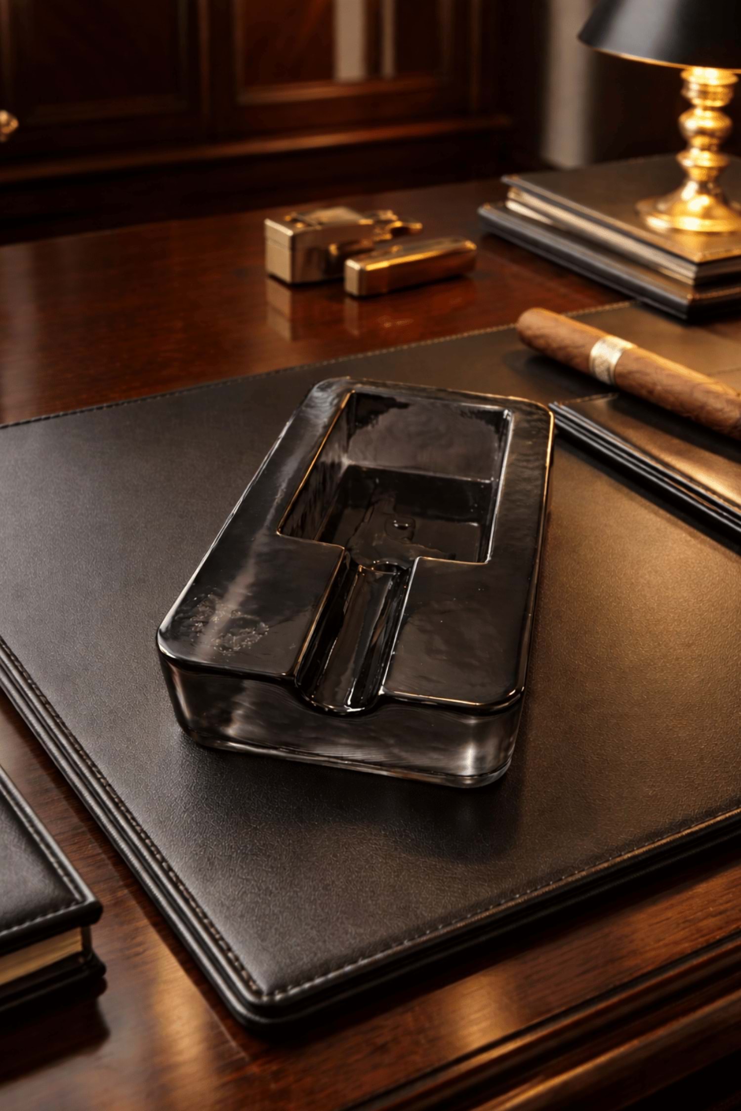 Zarafeti ve ağırlığıyla bulunduğu ortama prestij katan El Yapımı Cam Kabartma Detaylı Füme Puro Küllük, puro tutkunları için özel olarak tasarlanmıştır. El işçiliğiyle üretilen bu şık küllük, füme camın asil tonu ve kabartma detaylarıyla klasik ve modern çizgileri kusursuz şekilde birleştirir.